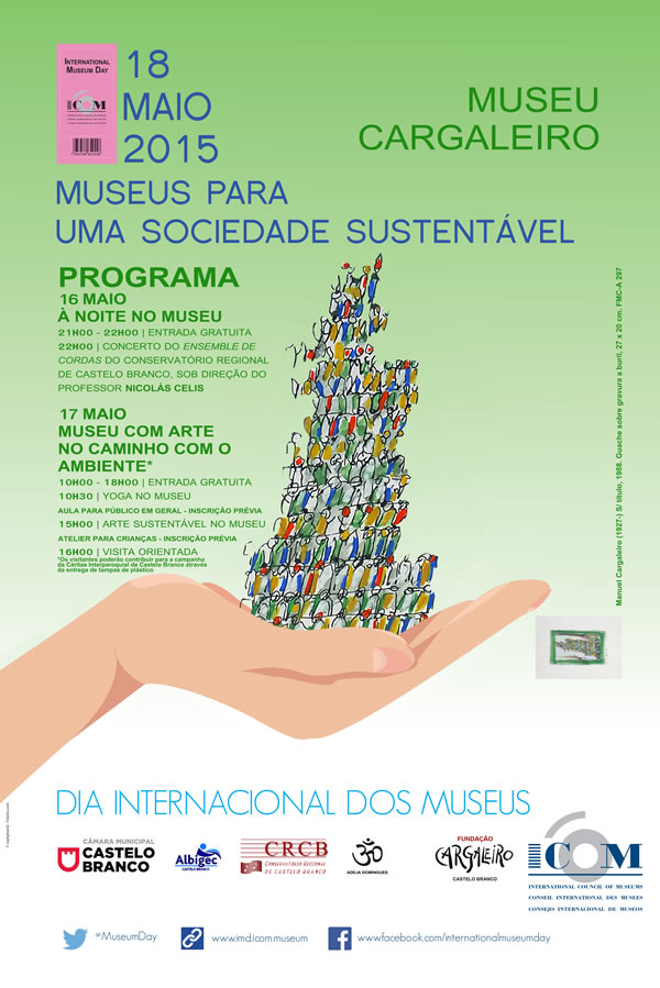 O Museu da Fundação Manuel Cargaleiro associa-se às comemorações do Dia Internacional dos Museus com uma programação muito especial onde todos podem participar, em família ou individualmente, com atividades que se realizam em torno das exposições patentes e do tema para o ano de 2015 - Museus para uma sociedade sustentável, proposto pelo ICOM.